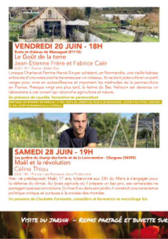 Programmation pour projection de documentaires au jardin